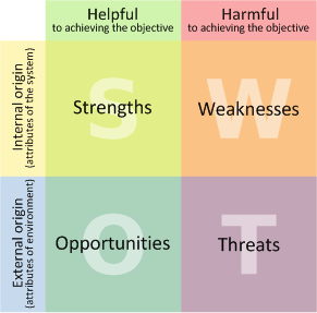 Once you’ve answered these questions, create a SWOT analysis (Strengths Weaknesses Opportunities Threats). It should look something like this: